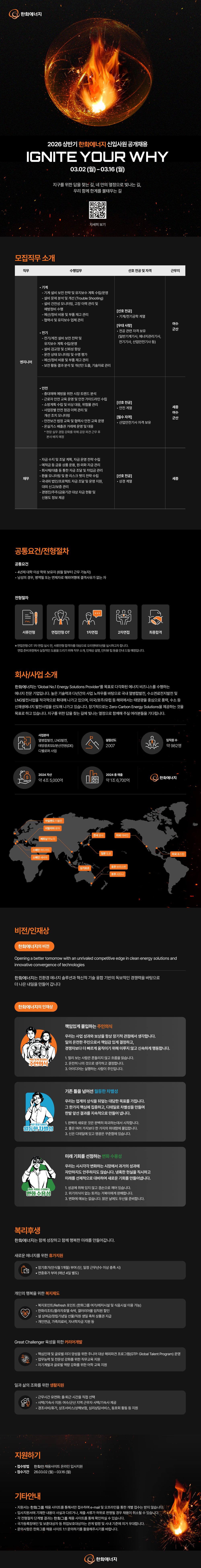 [한화에너지] 2026 상반기 신입사원 공개채용(~3/16(월))