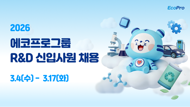 [에코프로그룹] 2026 에코프로그룹 R&D 신입사원 채용(~3/17(화)) 페이지 정보 작성자 노휘 댓글 조회 작성일 26-03-05 15:21 본문 2026 에코프로그룹 R&D 신입사원 채용 모집공고문 다운로드[에코프로그룹] 2026 에코프로그룹 R&D 신입사원 채용 (~3/17(화))Everyday Everywhere, EcoPro'언제 어디에서나 에코프로의 기술을 접할 수 있도록 하는 것'에코프로와 함께 더 넓은 희망으로 나아갈 여러분을 초대합니다! ■ 모집 분야 - 화학, 화학공학, 재료, 환경공학, 고분자, 신소재, 금속 등■ 지원서 접수 - 접수기간: 2026.03.04(수) ~ 03.17(화) - 접수방법: 에코프로그룹 채용 홈페이지 온라인 지원 ■ 공통지원자격 - 2026년 8월 졸업 예정자 또는 기졸업자 (학사이상) - 어학(영어) 말하기 성적 보유자 TOEIC Speaking 또는 OPIc IM2 이상 지원 마감일(2026.03.17) 기준 2년 이내 발급 성적에 한함 - 군필 또는 면제자로 해외여행의 결격 사유가 없는 자■ 전형절차 - 서류전형 > AI역량검사 > 실무면접 > 경영진 면접 > 채용검진 > 최종합격※ 2026 에코프로그룹 R&D 신입사원 채용에 대해 더 자세히 알아보고 싶다면?채용 홈페이지 바로가기: ecoprocareers.co.kr 목록 이전글[롯데그룹] 3·6·9·12 롯데그룹 예측가능한 채용 '3월 채용 오픈' (3/4~) 26.03.05 다음글(한국정보산업연합회) AI·SW마에스트로 제17기 부산센터 모집 안내 26.03.05 댓글목록 댓글목록 등록된 댓글이 없습니다.